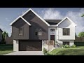 The Mayberry features a classic split-level design, showcasing a family room on the lower floor and cathedral ceilings in the living room area on the second floor. Additionally, it boasts a deck accessible from the dining room and a spacious 469 sq. ft. two-car garage. The living area optionally includes a fireplace, while the adjacent dining area offers deck access via sliding doors. Situated to the left of the dining area is the kitchen, equipped with a peninsula counter. A hallway connecting the living and kitchen areas leads to the bedrooms.